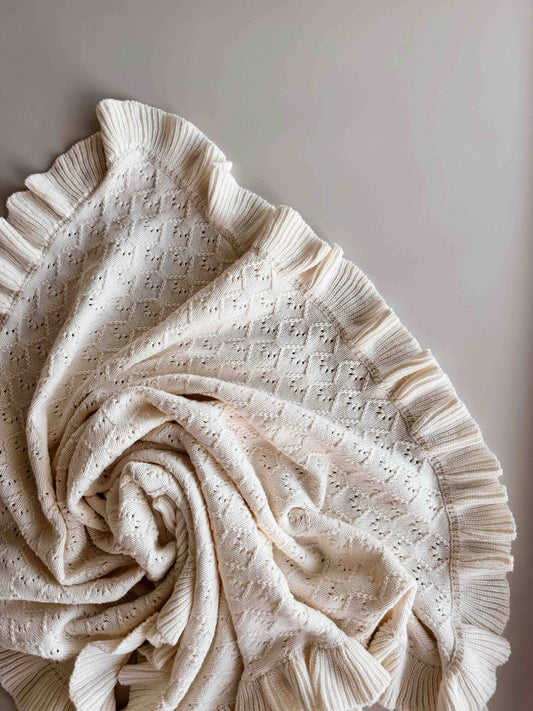 Mila Pointelle Frill Blanket | Snow